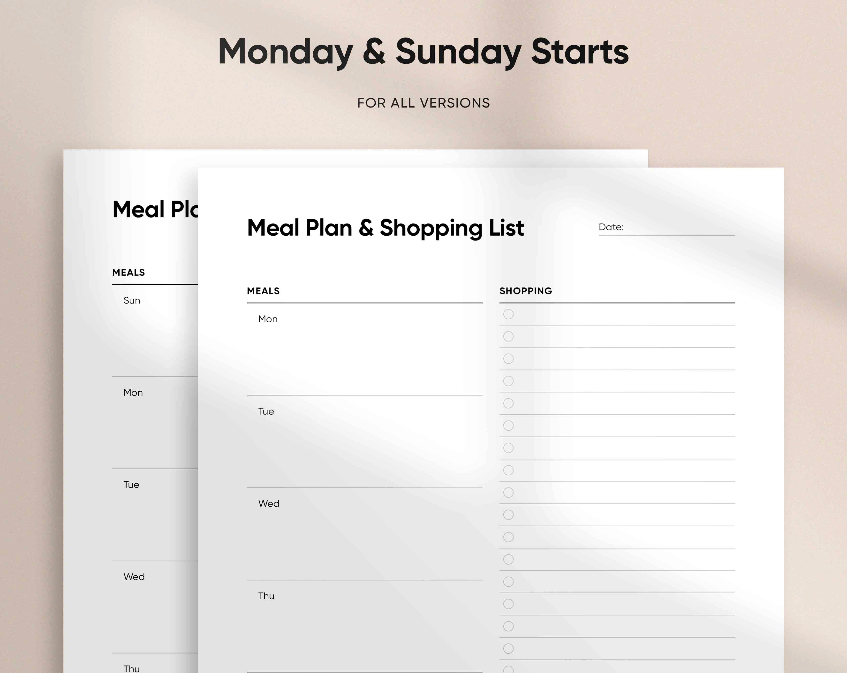 Streamline your meal prep and grocery shopping with our elegantly designed Meal Plan & Shopping List printable template. Created for the savvy planner, this template simplifies your culinary journey, blending practicality with style. It's the perfect companion for organizing your weekly meals and ensuring you never miss an ingredient. Ready to print and plan, it's the food enthusiast's essential for a well-managed kitchen.
