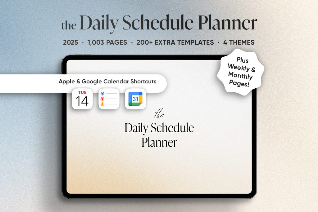 Stay organized and on top of your game with The Daily Schedule Planner. This 2025 planner features 4 beautiful themes spanning 1,003 pages in each planner. With daily, weekly, and monthly pages, you can track long-term goals and manage daily tasks seamlessly.